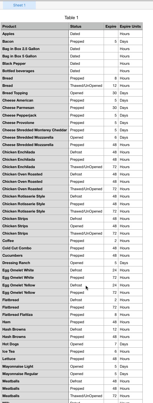 When entering multiple statuses for a product, repeat the product for each status, like Bread in the example.
